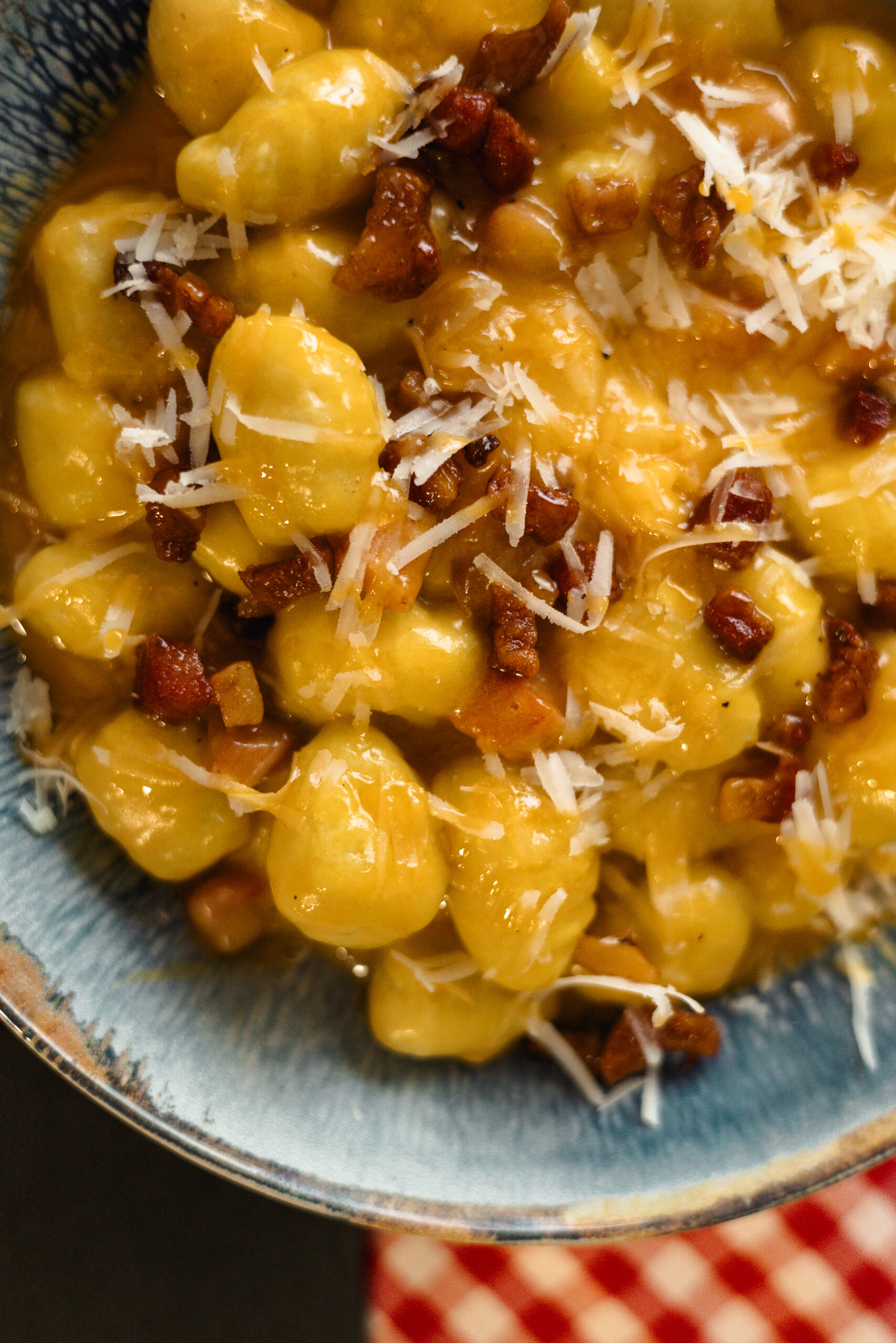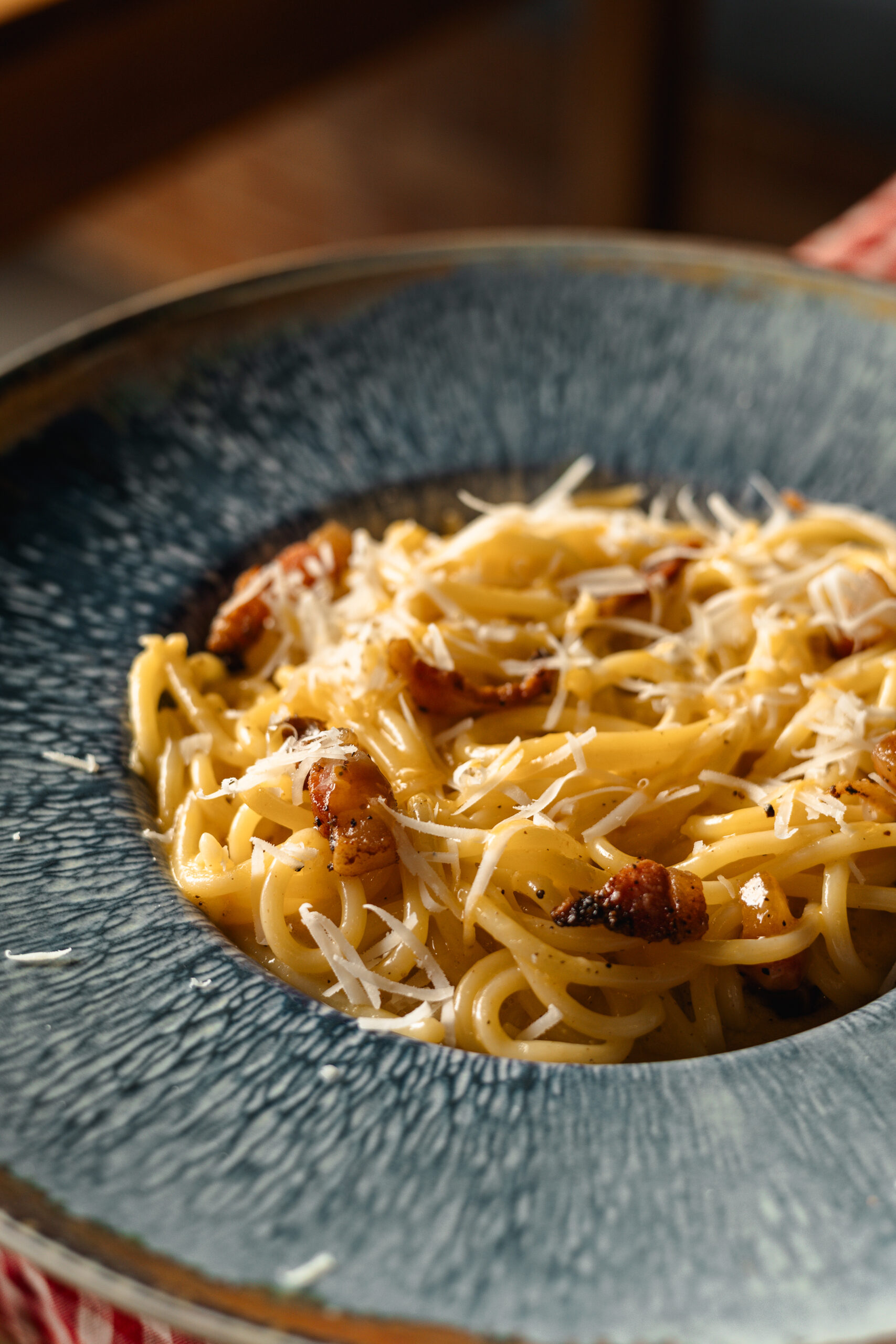 Mozzarella, crema d’ou, pecorino i guanciale.